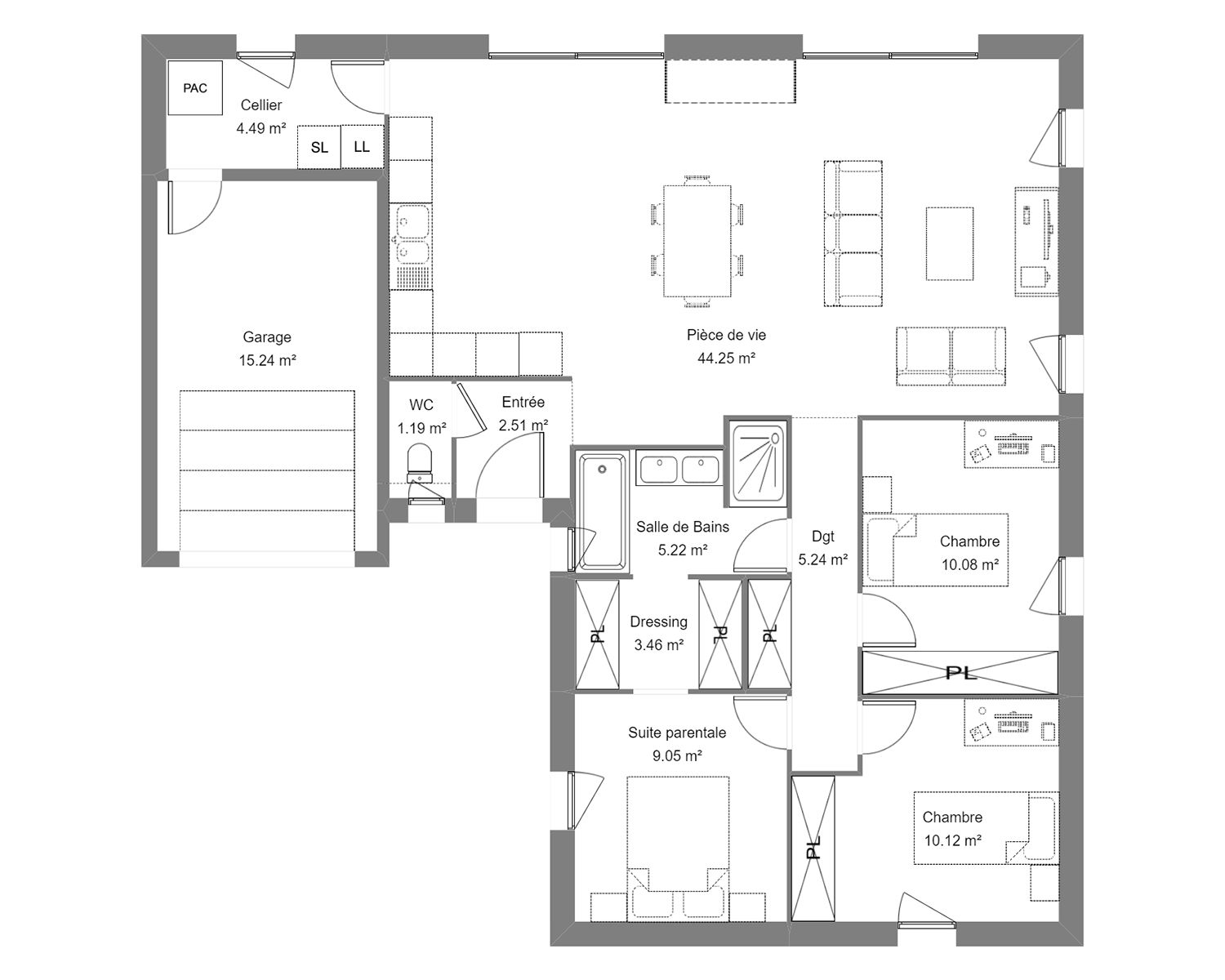 Maison individuelle de 96 m² 5 pièces avec 3 chambres