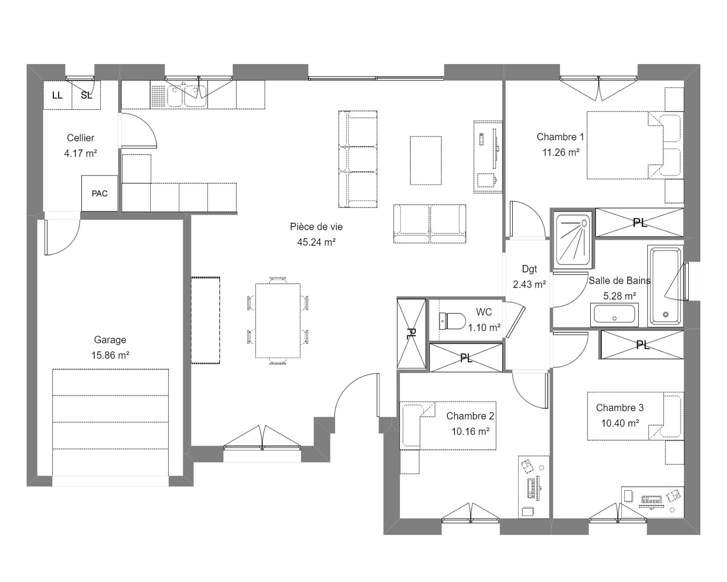 Maison individuelle de 90 m² 5 pièces avec 3 chambres