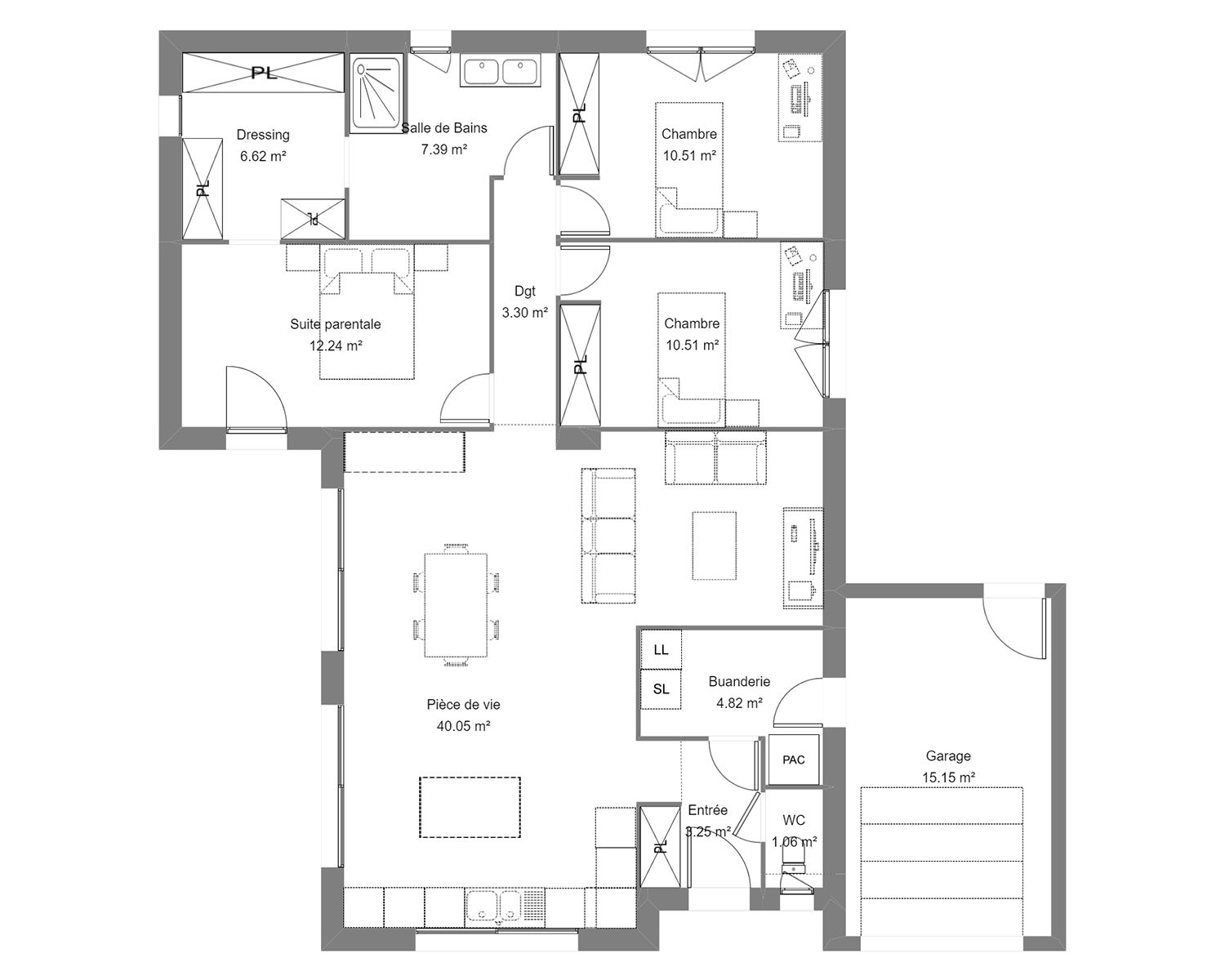 Prix avec assurance dommages-ouvrage comprise, hors VRD, terrain viabilisé, assainissement compris, frais de notaire non compris, taxes non comprises, frais divers non compris. Terrain sélectionné et vu pour vous sous réserve de disponibilité et au prix indiqué par notre partenaire foncier. Visuels non contractuels.